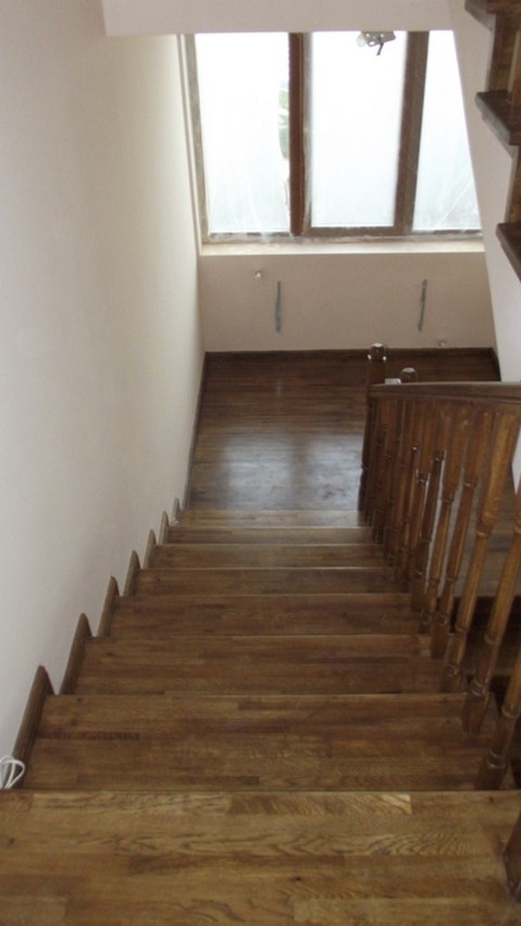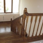 Realizare si montaj balustrade din lemn de stejar . Model clasic de balustrada cu strunjire atat pe balustrii intermediari cat si cei de capat. Sectiunea de 80 mm x 80 mm ptr. balustrii de capat si 40 mm x 40 mm ptr. cei intermediari. Balustrii intermediari sunt montati cate 2 pe treapta asigurand protectie in plus ptr. copii.