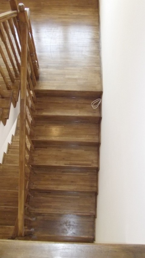 Finisajul nuc si lacul de parchet cerat intregesc imaginea acestei balustrade din lemn de stejar.