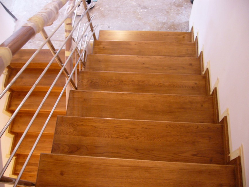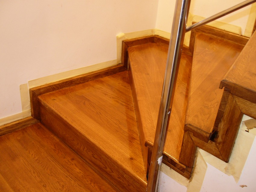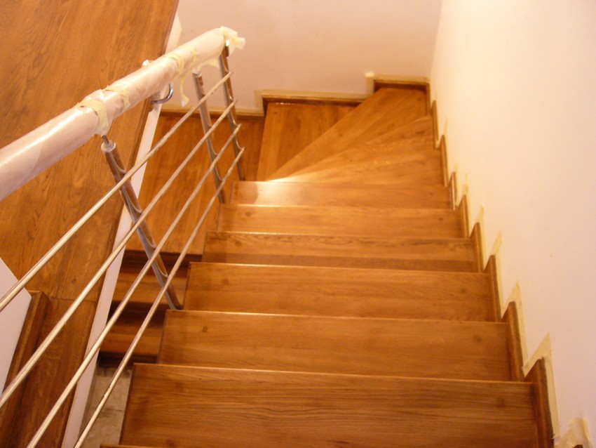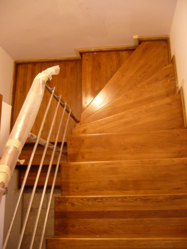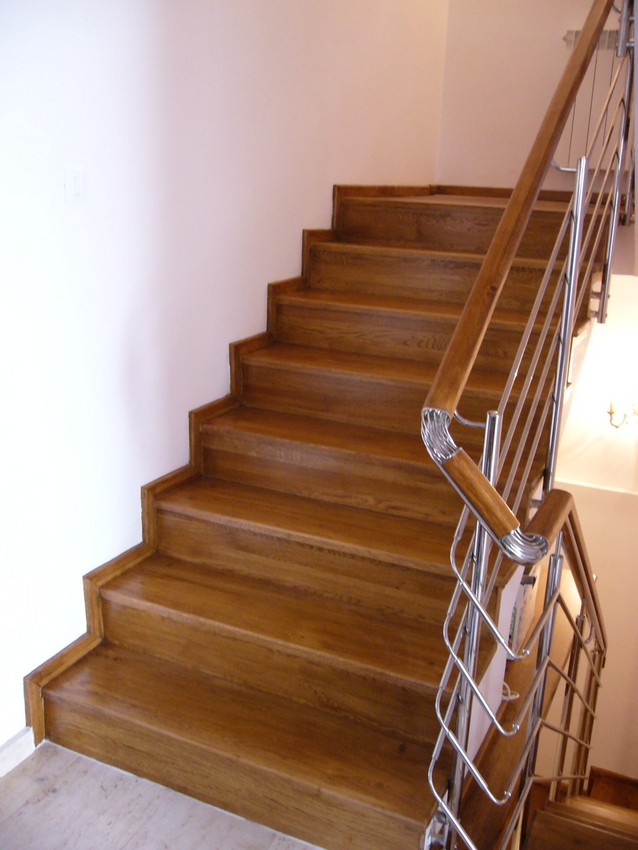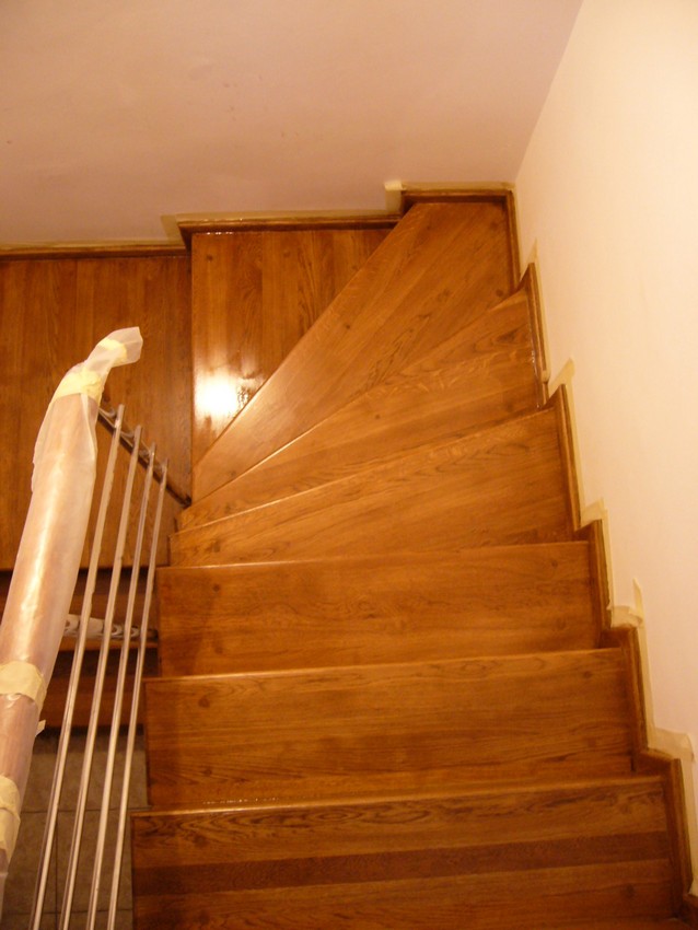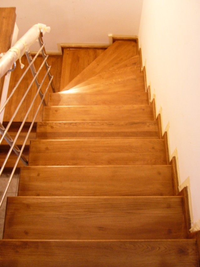 Finisajul elementelor din lemn aferente scarii sunt baituite nuc si lacuite cu lac de parchet cerat.
