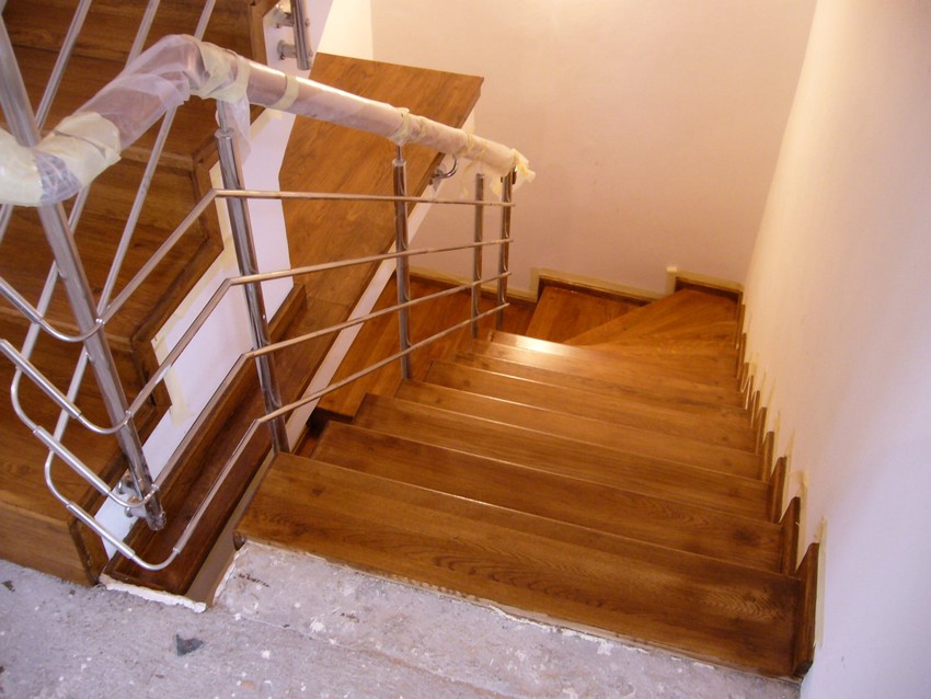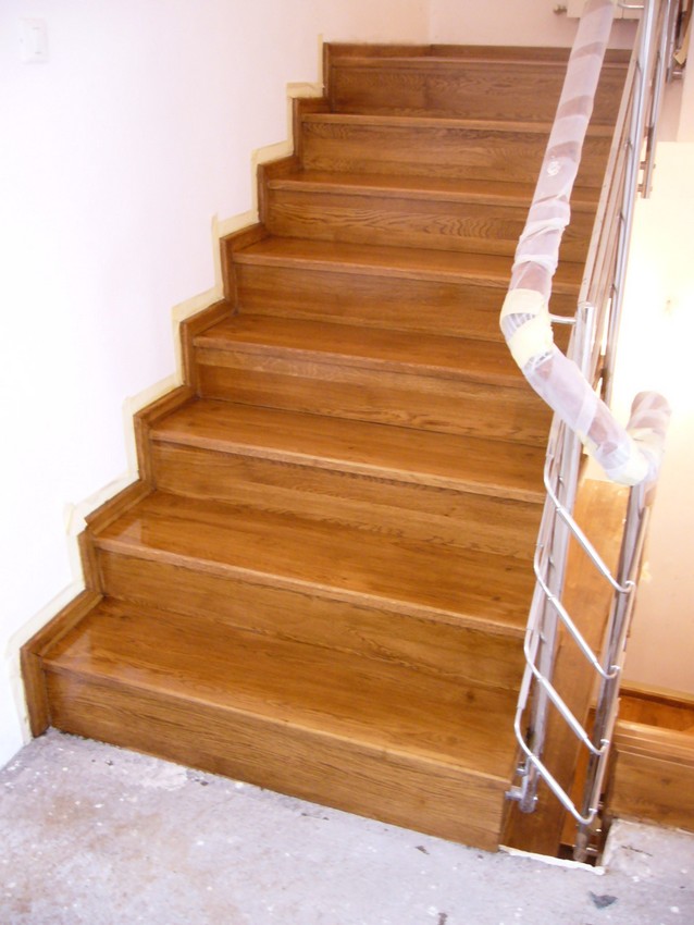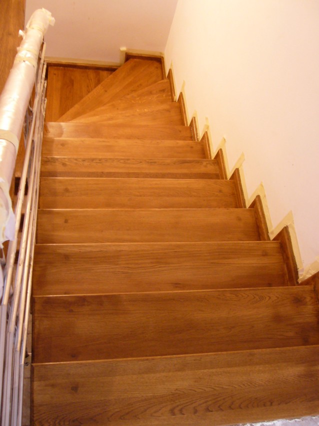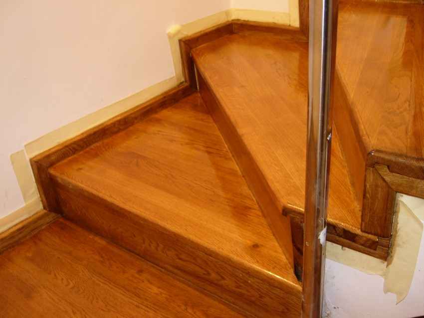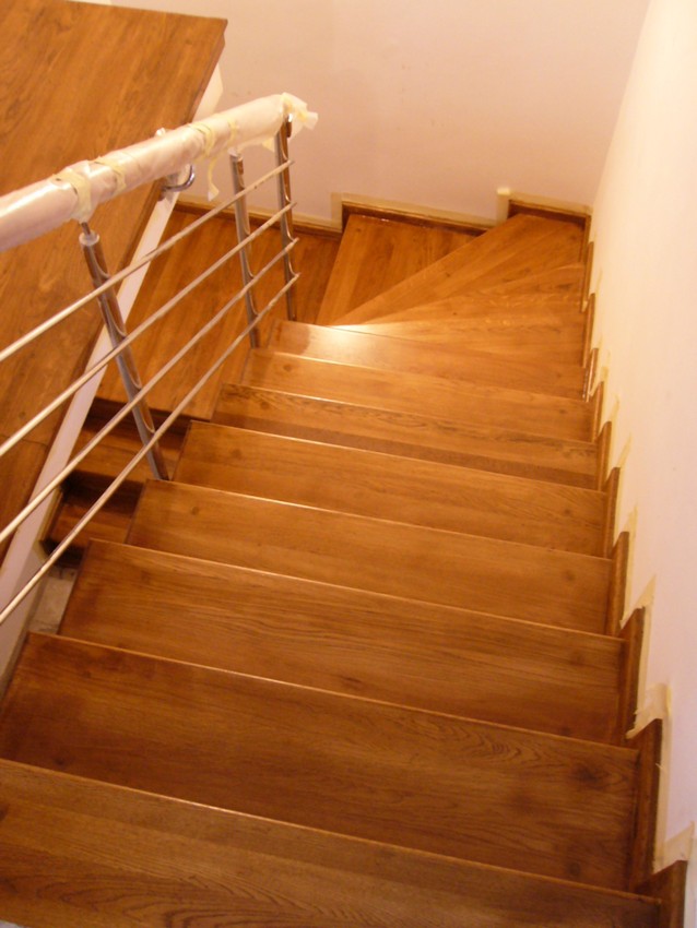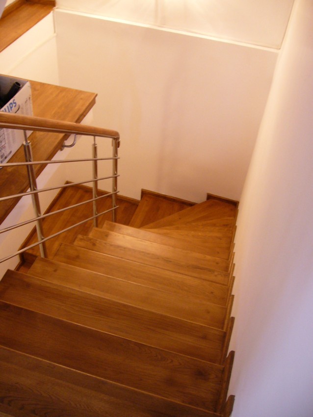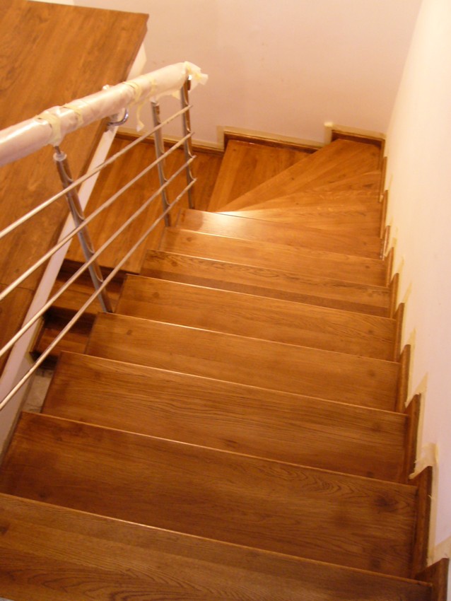 Finisajul elementelor din lemn aferente scarii sunt baituite nuc si lacuite cu lac de parchet cerat.